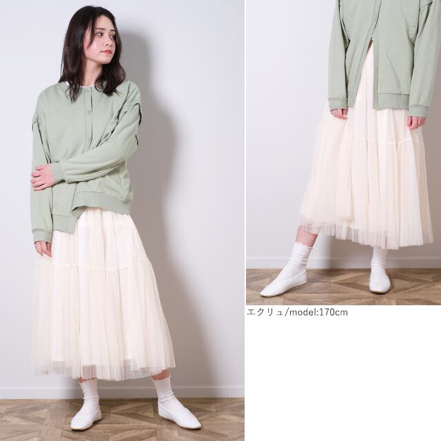ロング丈ティアードチュールスカート【即納】カジュアルトレンド 韓国 レディース