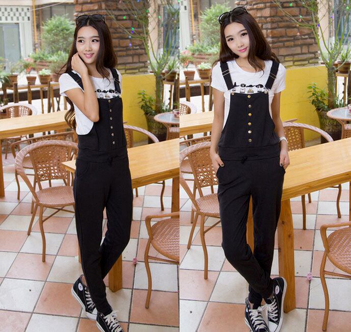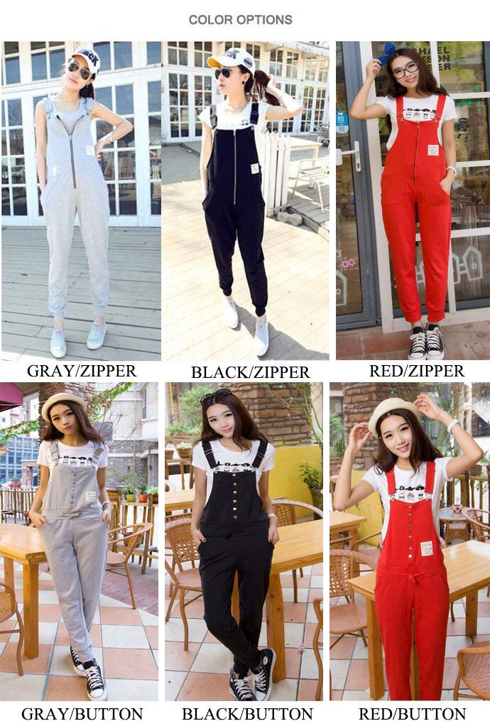 サロペット オールインワン コットン素材 ボタン・ジッパーの2タイプ4色から選べる