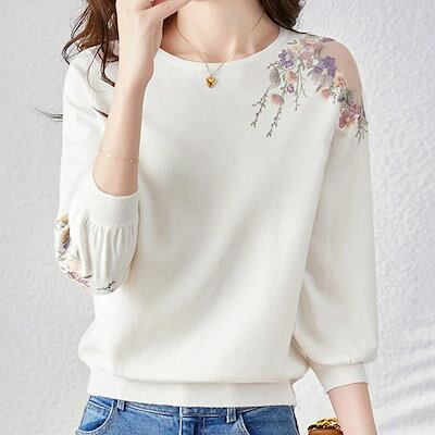 2024新作韓国ファッション春夏ニット ブラウス クルーネックニット/トップス柔らかくラウンドネックセーター女