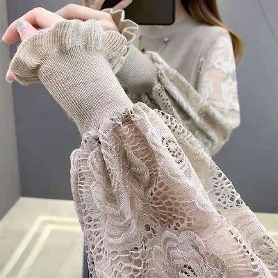 レース 透ける 長袖 ニット レディース ラウンドネック プルオーバーデザイン セーター ゆったり アンダーウェア