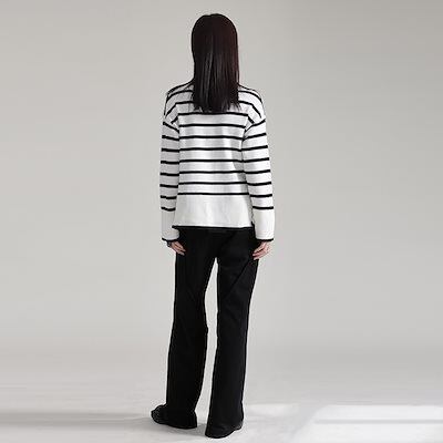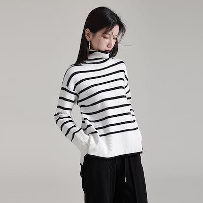 ストライプ タートルネック セーター 秋冬 怠惰風 ニットカーディガン ゆったり 着痩せ レディース インナー 長袖ブラウス レディース服