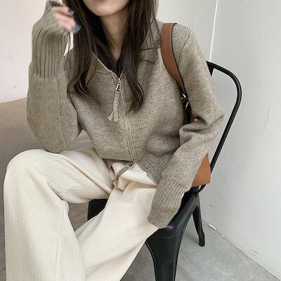 ニューデザインフード付きジップアップニットカーディガンレディースレトロ怠惰風アウターセーターコート秋冬