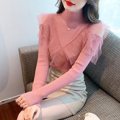 レディース 韓国 ニットカーディガン レース セクシー 透ける 長袖ブラウス セーター カシミヤタッチ