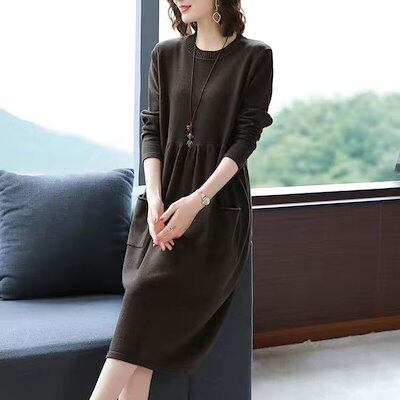 レディース ニット タートルネック ニットニットワンピース ロング 秋冬 韓国ファッション レディース ニット ロング 膝丈 A-C124