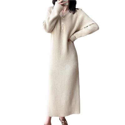 レディース ニット タートルネック ニットニットワンピース ロング 秋冬 韓国ファッション レディース ニット ロング 膝丈 A-C125