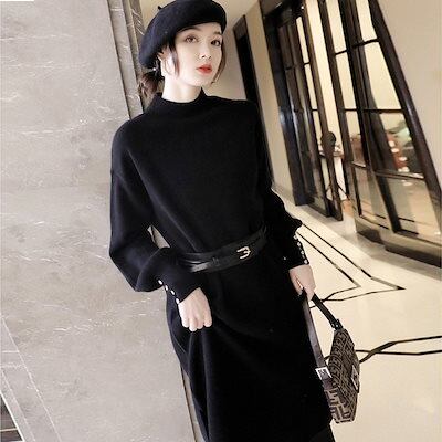 レディース ニット タートルネック ニットニットワンピース ロング 秋冬 韓国ファッション レディース ニット ロング 膝丈 A-C107