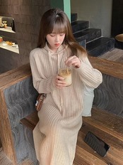 レディース ニット タートルネック ニットニットワンピース ロング 秋冬 韓国ファッション レディース ニット ロング 膝丈 A-C101
