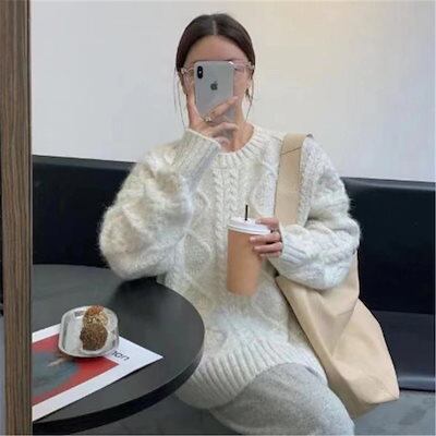 人気なリブニット ベーシックニット 日韓ファッション セーター レディース ゆったり百掛け ニットトップス 体型カバー カジュアル暖かい 冬ニットカシミヤタッチ