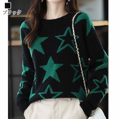 セーター レディース 星柄ニットセーター タートルネック ゆる ざっくり かわいい 厚手 ケーブル編み トレーナー 人気 白 黒 ブランド 柄 ハイネック ニットセーター 春 クルーネック おしゃれ