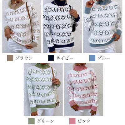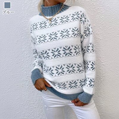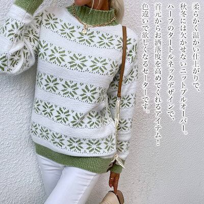 セーター レディース ハーフタートルネックセーター クルーネック 長袖 Vネック ふわふわ ブランド 春 おしゃれ 人気 秋 タートルネック ノルディック ロング ざっくり 白 厚手 柄 ケーブル編み