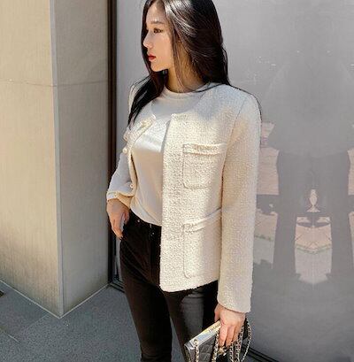 ツイードジャケット レディース ツイードノーカラー スーツジャケットアウター ライトアウター上品 入学式卒業式入園式卒園式ママスーツセレモニー フォーマルML 2L