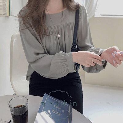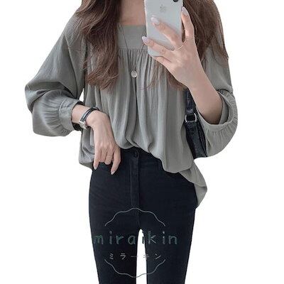 新品 大人気 ブラウス レディース 春 夏 春夏 ブラウスシャツ とろみ シャツ トップス 無地 長袖 チュニック スクエアネック ベージュ グレー 20代 30代 40代