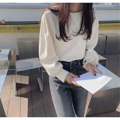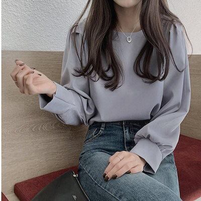 新入荷 ブラウス レディース シャツ 長袖 オフィス シフォン クルーネック ゆったり パフスリーブ 無地 カジュアル 通勤 韓国風 おしゃれ 春 上品 新作