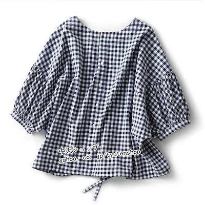 ブラウス レディース 半袖 チェック柄シャツ オシャレブラウス 綿麻 ショート丈ブラウス ドルマン袖 トップス カジュアル 着痩せ 気質 ゆったり お出かけ 新作