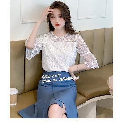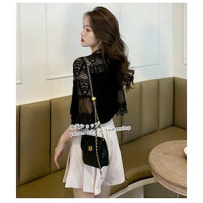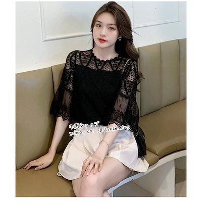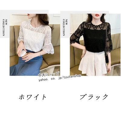 半袖ブラウス シフォン レディース レース花柄 トップス きれいめ 丸首 気質 淑女 デート 着痩せ シースール セクシー 韓国風 夏秋新作 ブラック ホワイト