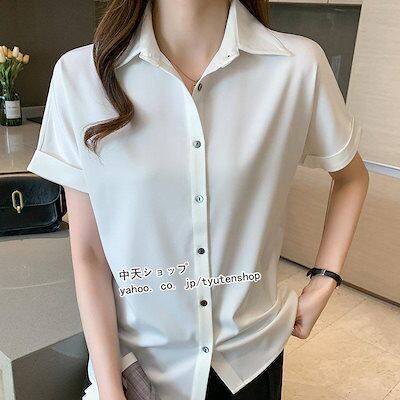 シャツ ブラウス レディース 夏秋 トップス 折り襟 開襟 半袖 就活 面接 OL 通勤 オフィス 入社式 就職 事務服 フォーマル ビジネス 大人 上品 気質 無地 着痩せ