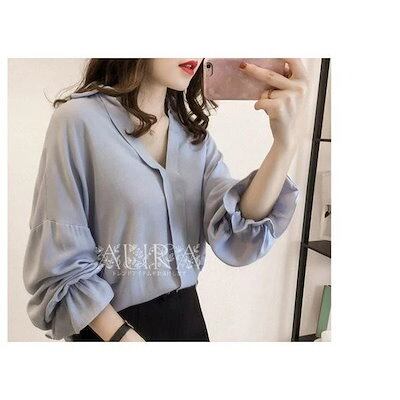 ブラウス おしゃれ 春秋 長袖 Vネック 通勤 上品 新作 レディース ブラウス シャツ 無地 オフィス トップス 大人 大きいサイズ 韓国風