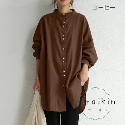新作登場 ブラウス レディース 春 シャツワンピース チュニック ロングシャツ 長袖 シャツブラウス 夏 チュニック ワンピース トップス 立ち襟 大人 通勤 ゆったり 30代