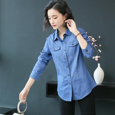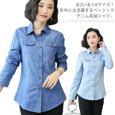 デニムシャツ シャツ レディース デニムブラウス トップス 大きサイズ 薄手 長袖 春秋 ベーシック デニム 長袖シャツ カジュアル