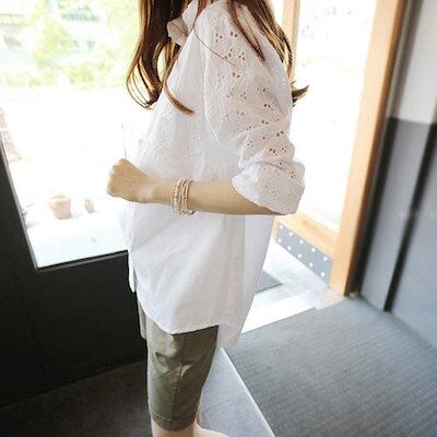 シャツ ブラウス レディース 白シャツ 袖透け 長袖 カジュアルシャツ 大きサイズ ホワイト 春服 春物 ゆったり 可愛い
