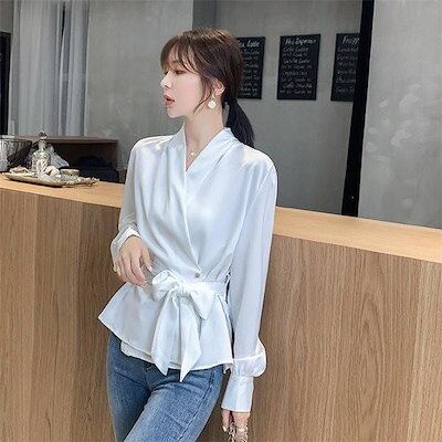レディースブラウス 秋 ブラウス 長袖 Vネックブラウス シルク トップス 無地 薄手 きれいめ リゾート