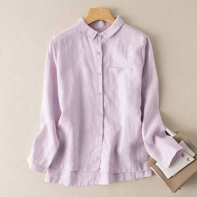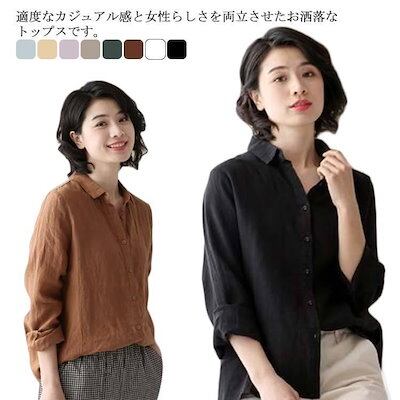 綿麻シャツ ブラウス 春秋 レディース トップス きれいめ 通勤 長袖 オフィス 体型カバー 通気性 大きいサイズ ゆったり ポケット付き お洒落 薄