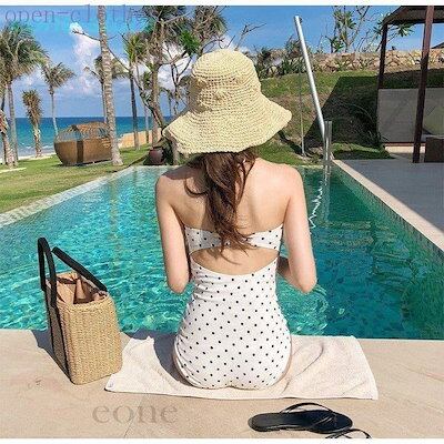 水着レディース 体型カバー 水着 サロペット モノキニビキニ ドット柄 小胸バンドゥ 水着 韓国風