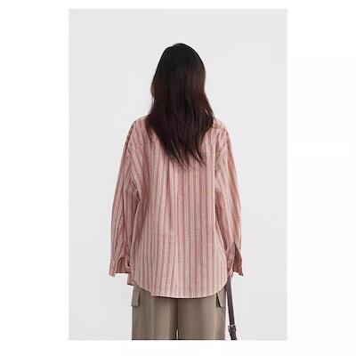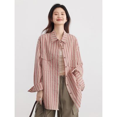 今っぽシアーシャツ 長袖 春夏の新作レトロな開襟縦縞シャツトップスゆったりシャツ女 韓国 ブラウス レディースファッション オフィス カーディガン