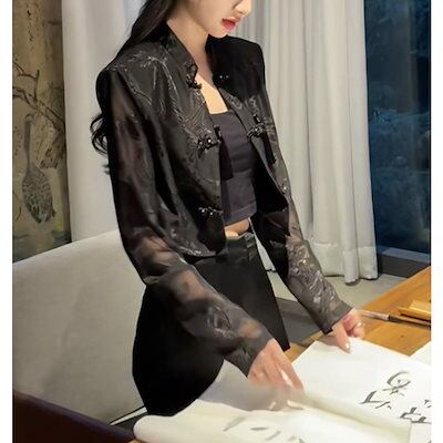 今っぽシアーシャツ 長袖 夏の新作レトロ風ジャカード日焼け止め新中式バックルUVカット長袖トップス 韓国 ブラウス レディースファッション オフィス カーディガン
