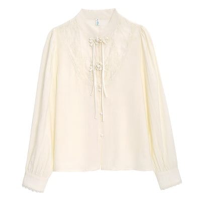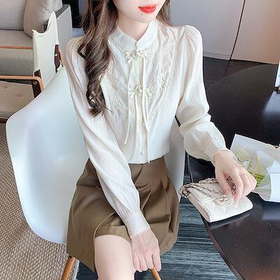 今っぽシアーシャツ 長袖 2024早春の新中国風刺繍シャツ温和で甘いハイネックトップス 韓国 ブラウス レディースファッション オフィス カーディガン