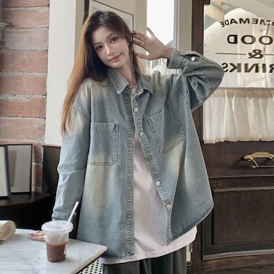 韓国人気 デニムジャケット レディース レトロなデニムシャツコート女性長袖アウターミディアムブラウス トップス アウター