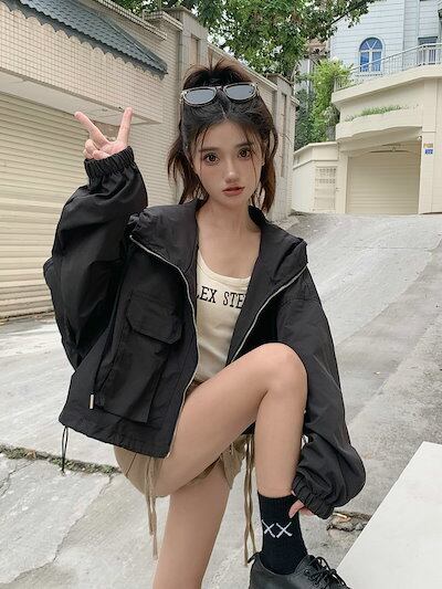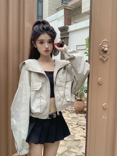 2024春夏 ショート かわいい フル ブルゾン トップスアウター ショート丈 スタンドショートお出かけハイストリートアウター長袖セクシートップスカジュアルファッションお出かけ 秋トラック