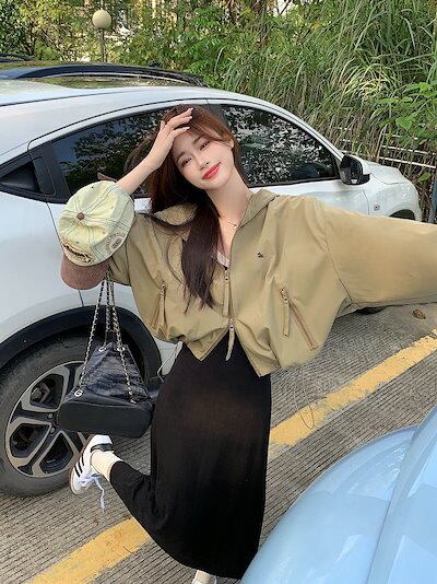 2024春夏 ショート かわいい フル ブルゾン トップス アウター ショート スタンド ショートお出かけハイストリートアウター長袖セクシートップスカジュアルファッションお出かけ 秋トラック