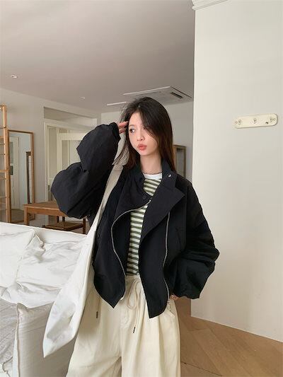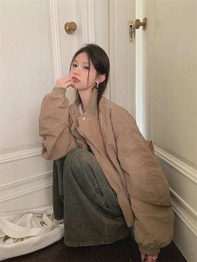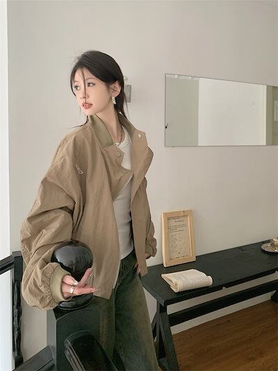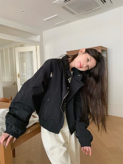 2024春夏 ショート かわいい フル ブルゾン トップス アウター ショート スタンド ショート お出かけハイストリートアウター長袖セクシートップスカジュアルファッションお出かけ 秋トラック