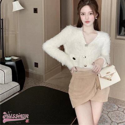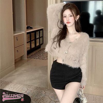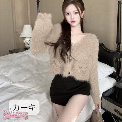 ニット かわいい 長袖 トップス ショート セーター レディース 羽織り 色っぽ 女っぽ Vネックカジュアル きれいめ 大人っぽ 上品 お姉さん ゆったり ファッション フェミニンエコオシャかわ 秋冬