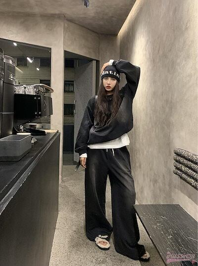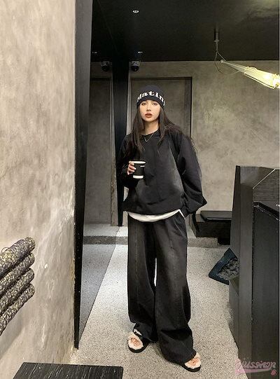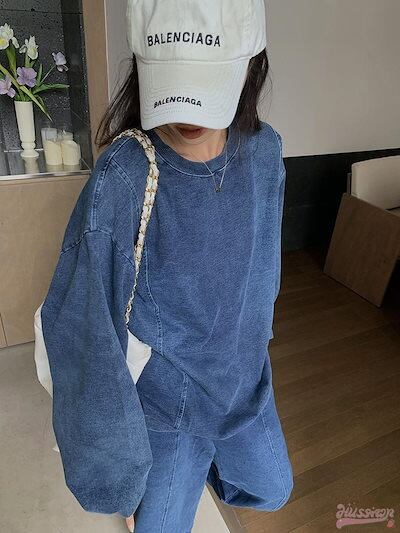 上下別売り 長袖シャツ レディース かわいいトップス ラウンドネックカジュアルパンツボトムスシルエット2点セット 風きれいめ サイズ 秋冬スタイルゆったりファッションダブル加工カジュアル大人可愛い