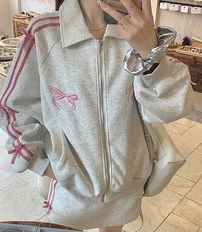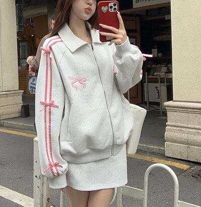 今っぽいスポーティーなルック 2024 春夏 上下2点セット トップス お出かけ 羽織り ショート丈フルラウンドヘムミニ丈ボトムスストレート系ゆったりレディーススタイルアップワイドお出かけトラック