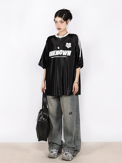 2024夏 韓国可愛い風トップス Tシャツ ファッション 半袖 スリムフィット サイド ペイントシルエット ゆったり丈 休日レディースサイズ韓国Vネック おしゃれ カジュアル メンズライク T