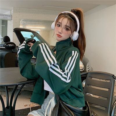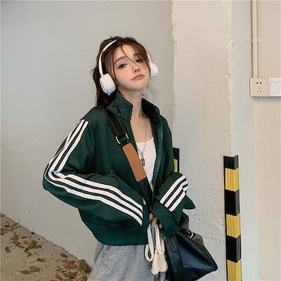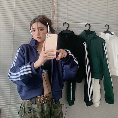 2024 秋 韓国 かわいい レディース アウター ブルゾン お出かけ ブラック ライトカーキ アウター長袖セクシートップスサイド冬カジュアルファッション系お出かけフル丈トラック1