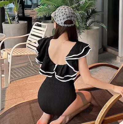 2024 夏 韓国 露出を控えた ファッション ビキニ スイムウェア付き タンキニ スタイルアップ 花 大人女子水着