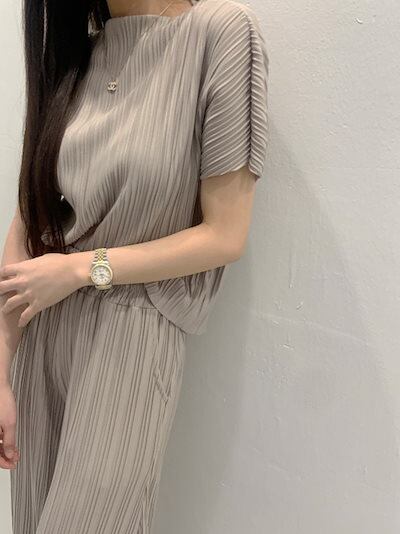 2024夏 韓国セットアップ トップス モックネック 半袖 ロングパンツ ワイド ストレート 細見え 夏 黒 白 おしゃれ かわいい きれいめ 韓国ファッション レディース お出かけ
