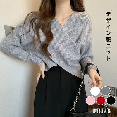無料!秋冬ニット クロスデザイン感 Vネック 着やせ ニットトップス 韓国ファッション 秋冬インナー セーター レディース 流行り 百掛けベーシックニット 怠惰な風