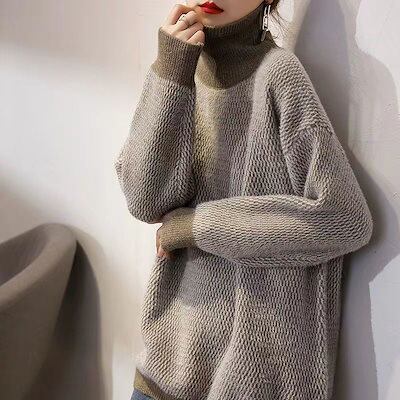 [秋冬のマストアイテム] ハイネック ニットセーター レディース トップス バイカラー 配色