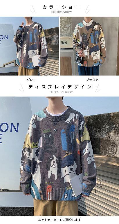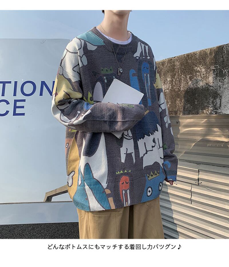 ニットセーターメンズ秋冬リブ