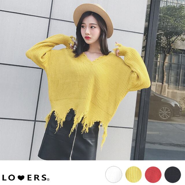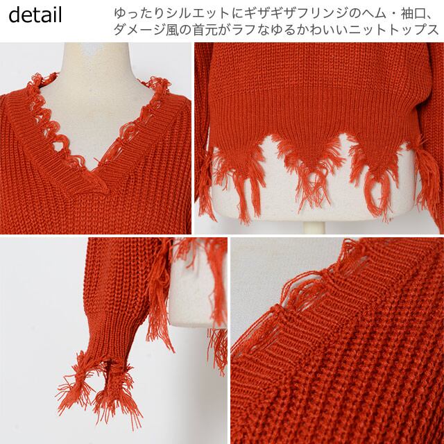 裾ダメージVネックニット 【即納】 トップス ニット レディース