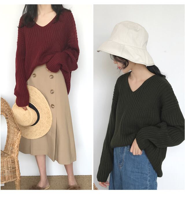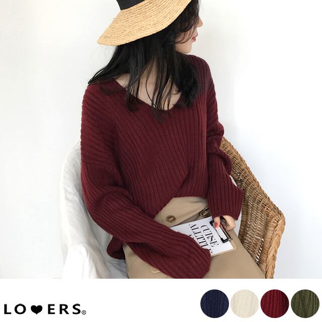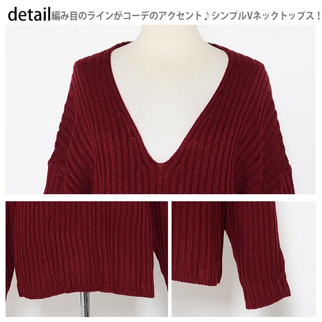 Vネックリブニットトップス 【即納】トップス ニット レディース ゆるニット リブ