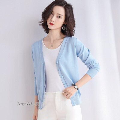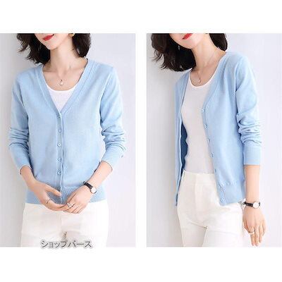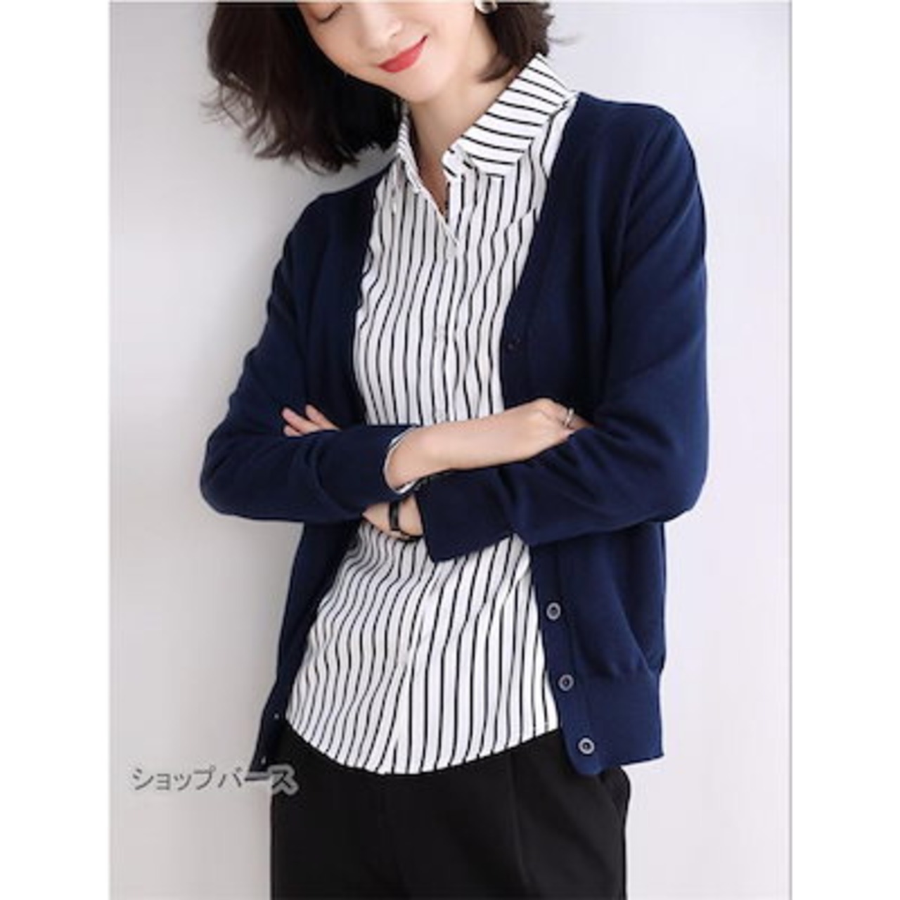 【beifengzh 0 ng】新作通勤 カーディガン レディース 長袖 制服 Vネック 事務服 オフィス 看護師 介護 医療 受付 ニット ショート丈 春 夏 秋 冬 羽織り 無地