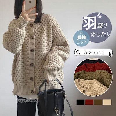 【beifengzh 0 ng】新作カーディガン レディース ニット 秋服 ニットカーディガン 長袖 セーター カジュアル 体型カバー クルーネック 羽織り アウター 春秋冬 トップス