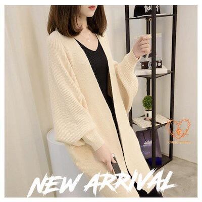 【beifengzh 0 ng】新作カーディガン レディース ノーボタン ニットカーディガン ドルマン袖 体型カバー ノーカラー ニットコーディガン 秋 春 アウター オフィス