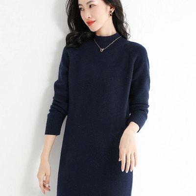 秋冬 レディース グレー モックネック 40代 Aライン ニット 体型カバー 黒 カジュアル ロング ワンピース 長袖 無地 ニット ニットワンピース ワンピース チュニックニットソー オシャレ ゆ